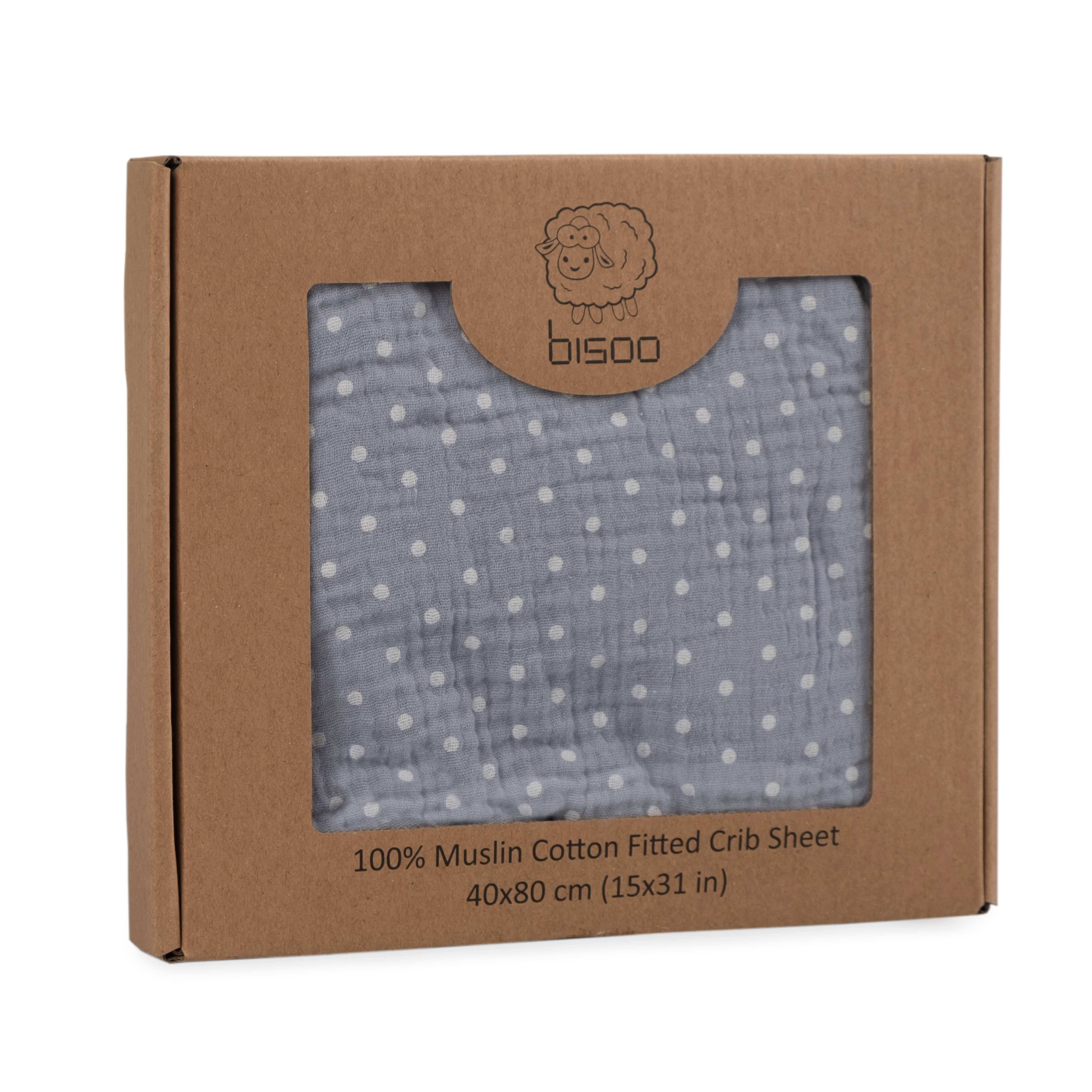 •    Una sábana bajera de muselina disponible en dos tallas (40x80 cm o 50x83 cm), ideal para cochecitos, minicunas o cunas colecho. Transpirable, suave y apta para lavadora.
